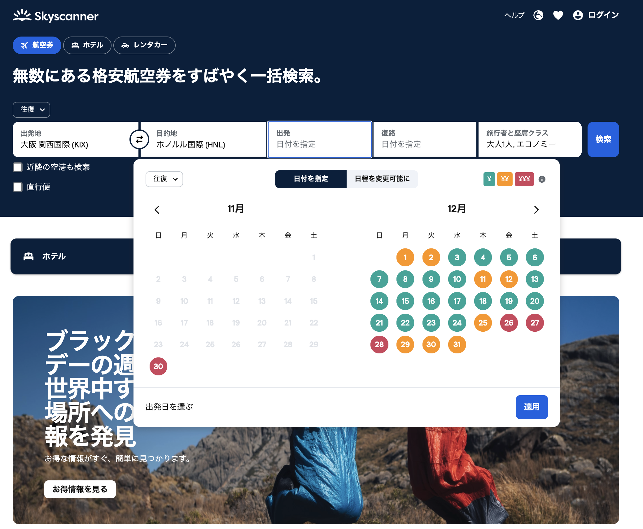 そんなときは、スカイスキャナーが一番頼りになるツールです。