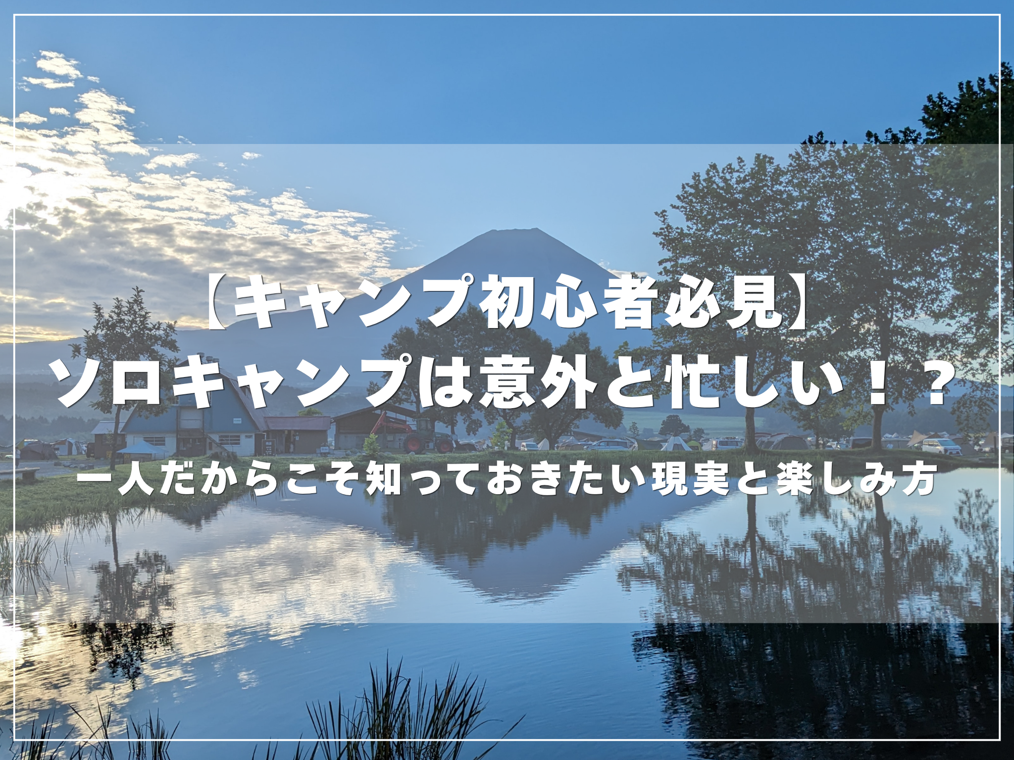 ソロキャンプをこれから始めたい方、不安を減らしたい方に役立つ内容です。