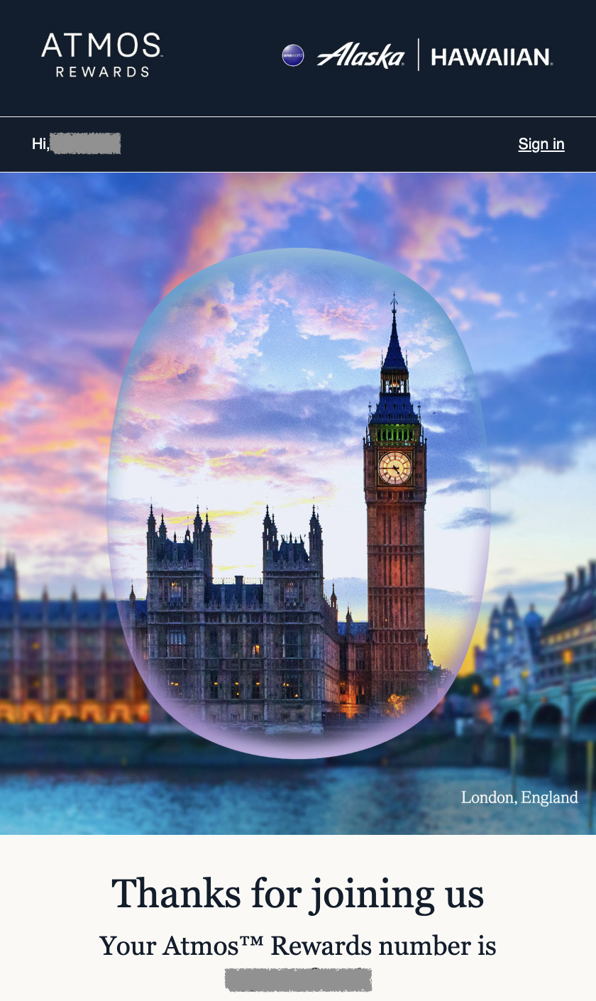 ④会員登録完了メールが届けば無事に HawaiianMiles から Atmos Rewards へ移行完了です。